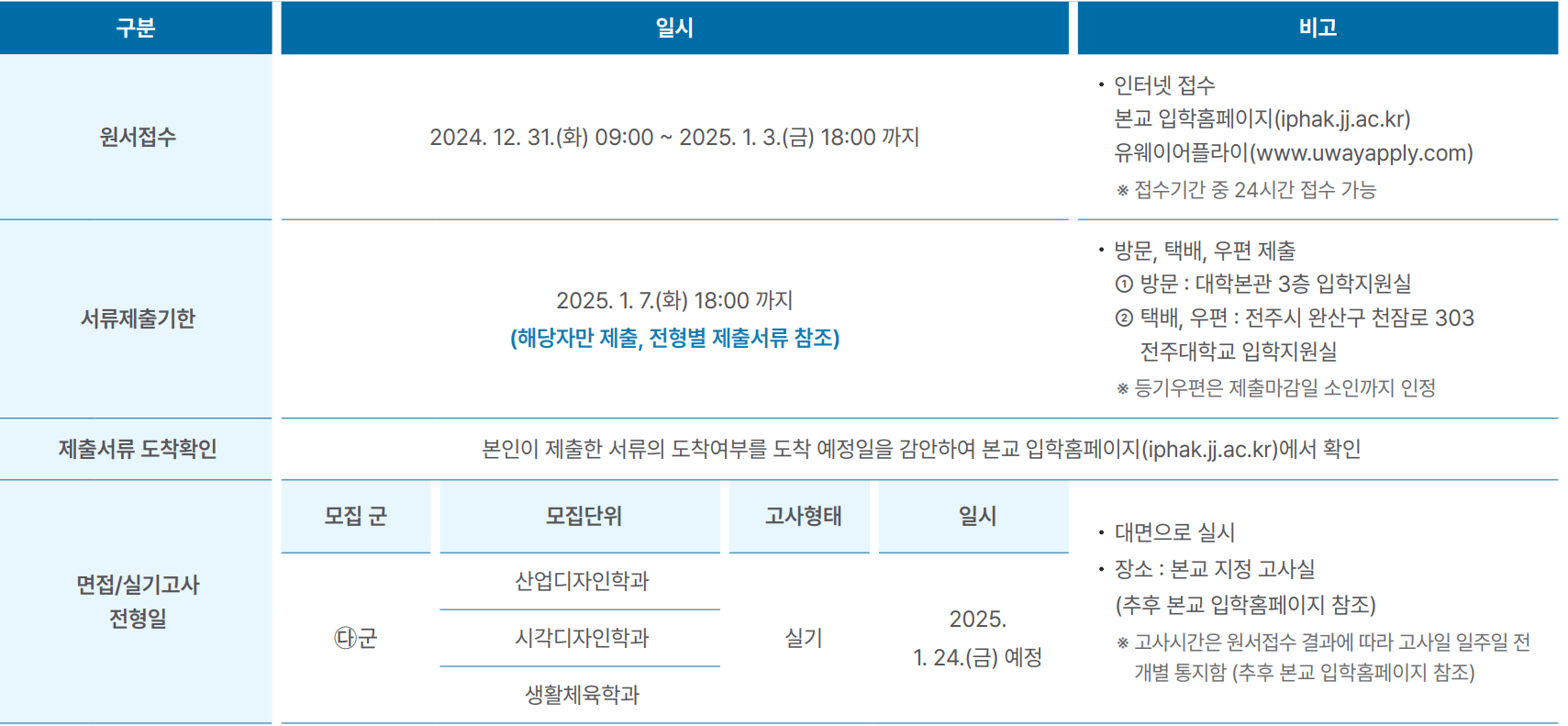 ● 전주대 입학홈페이지 : http://iphak.jj.ac.kr