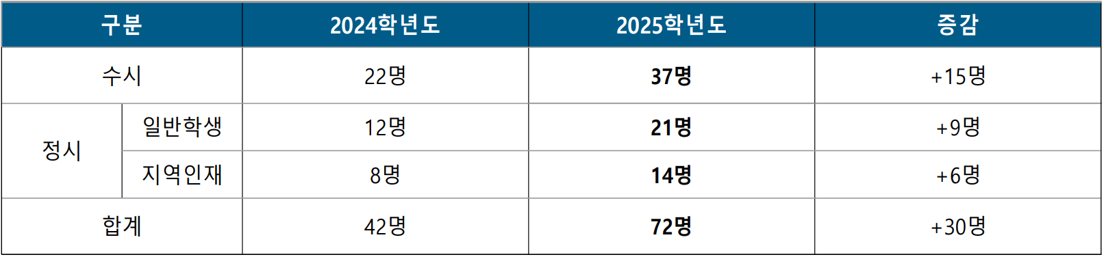 | 구분 | 2024학년도 | 2025학년도 | 증감 |