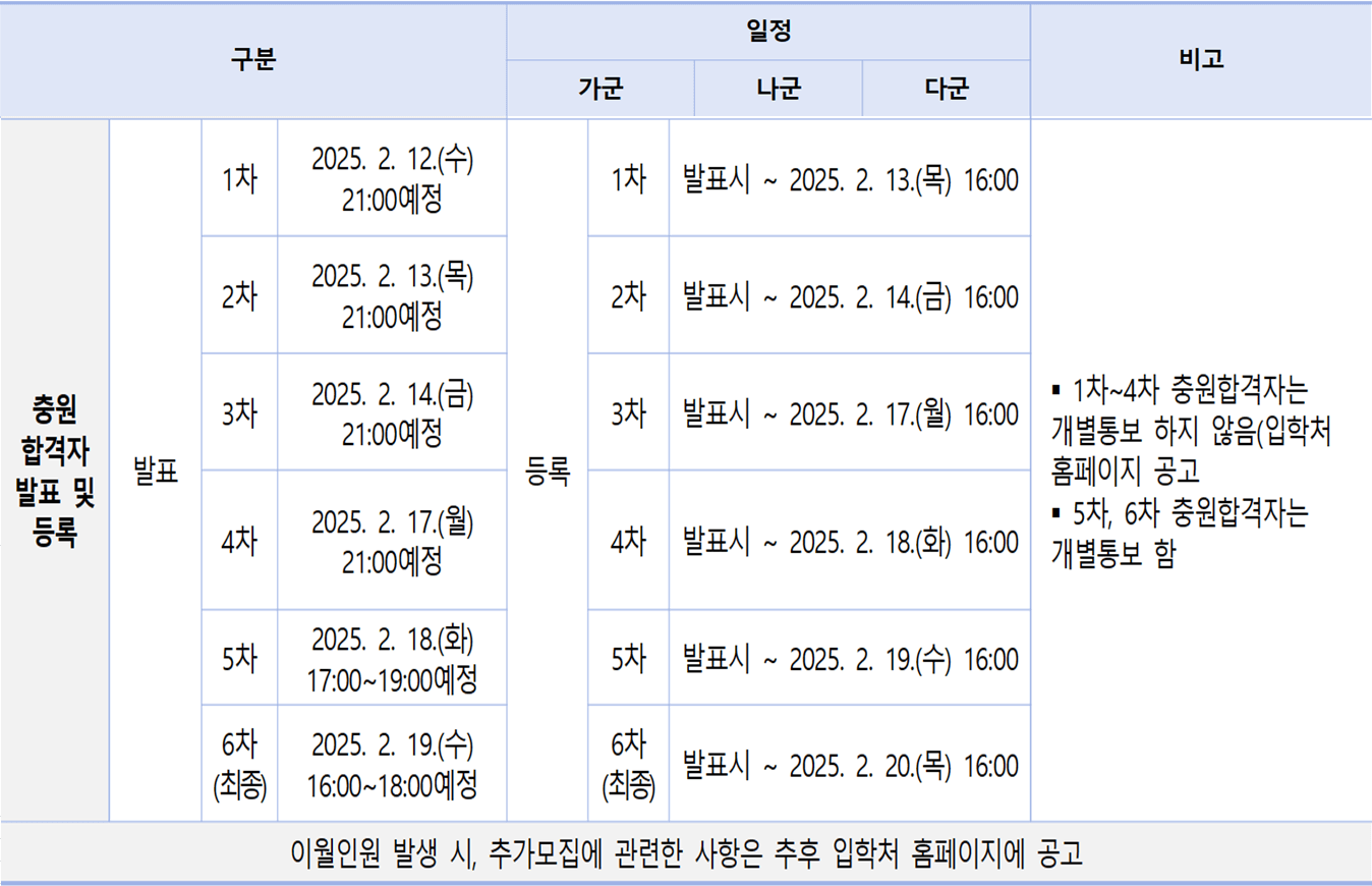 ◈ 정시모집 합격자 발표일 및 충원합격자 발표일 안내