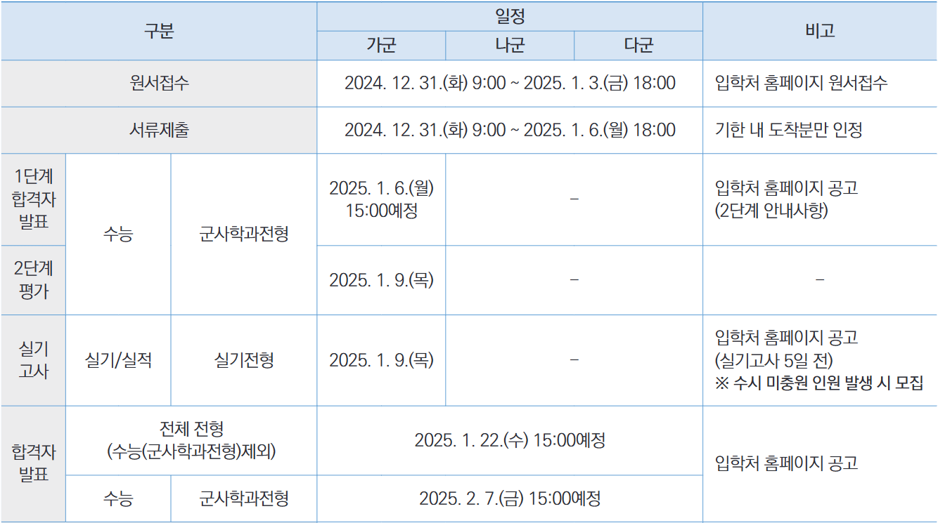 - 수능[군사학과전형] : 2025. 2. 7.(금) 15:00 예정