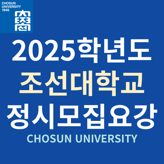 1946년 7만 2천여 설립동지회원의 숭고한 뜻을 모아 대한민국 유일의 민립대학으로 출발했고, 개교 78주년의 경험과 영광을, 창학 100년을 향한 재도약의 원동력으로 삼아 발전을 거듭하고 있습니다. 대학과 지역사회의 경계를 초월해 지역의 성장과 혁신의 공급처 역할을 자임하며, 지역과 공생하고 공유가치를 창출해 성장의 솔루션을 제공하는 지역의 싱크탱크가 되고자 하는 조선대의 2025학년도 정시모집 합격자 발표 및 충원합격자 1차~6차(최종) 발표 조회, 정시모집 실시간 경쟁률, 수시모집 합격자 발표 및 충원(추가) 합격자 발표, 정시모집 원서접수일 및 서류제출, 정시모집요강, 정시모집 주요 변경사항, 모집군, 2024학년도 정시모집 경쟁률 및 입시결과, 수능성적 산출 프로그램, 학과소개, FAQ 및 Q&A 등에 대해서 알아보도록 하겠습니다.