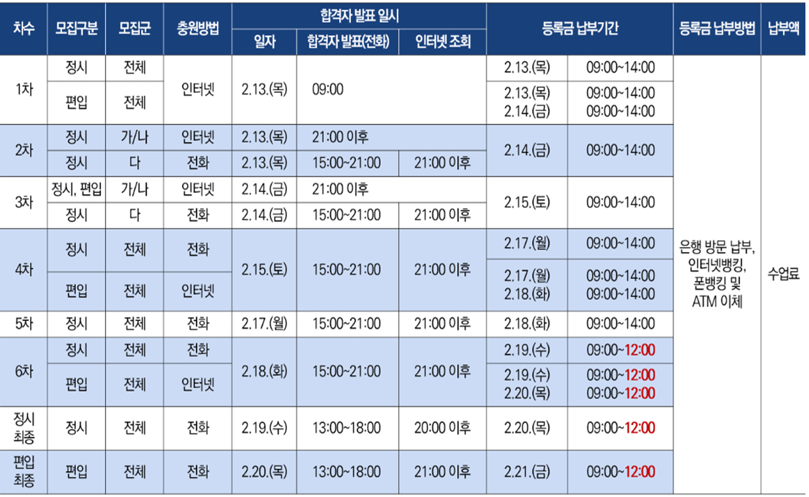 ◈ 정시모집 합격자 발표일 및 충원합격자 발표일 안내