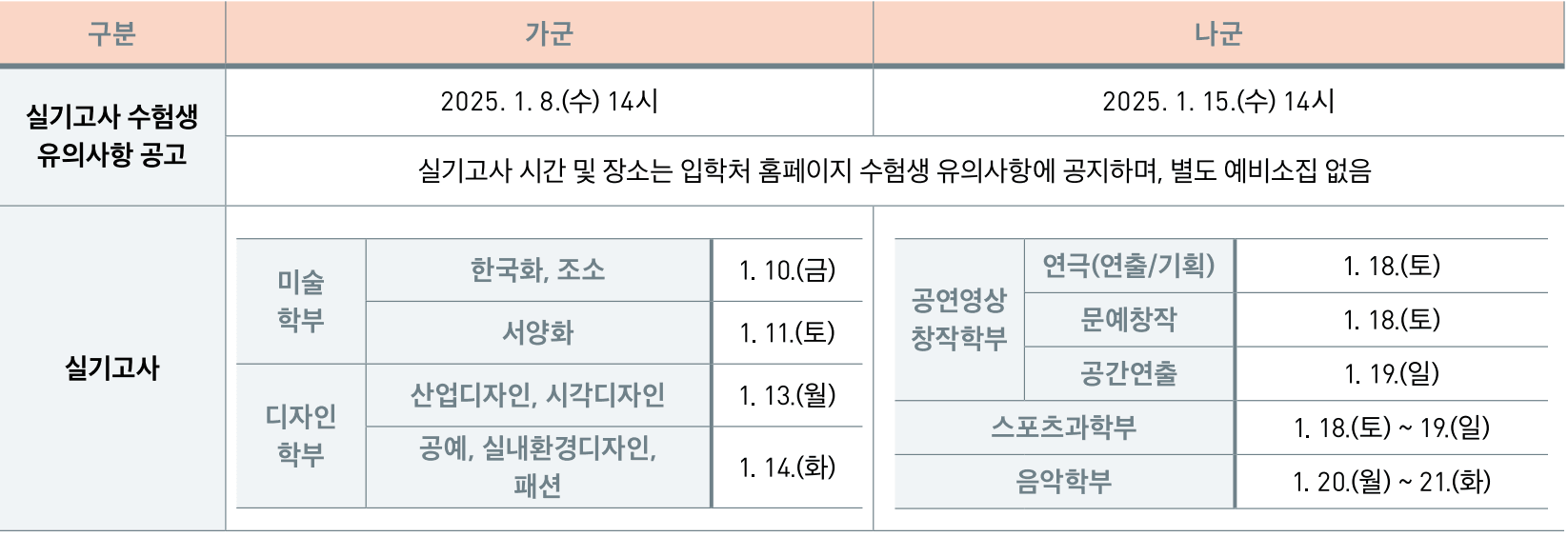 2. 수능(실기형), 실기/실적(실기형) 실기고사 일정