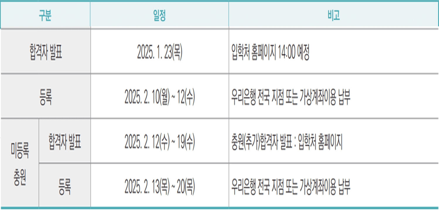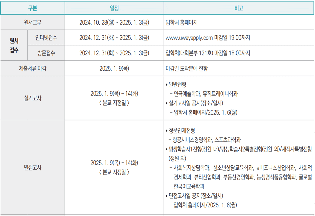 | 원서접수일 | 2024. 12. 31.(화) ~ 2025. 01. 03.(금) |