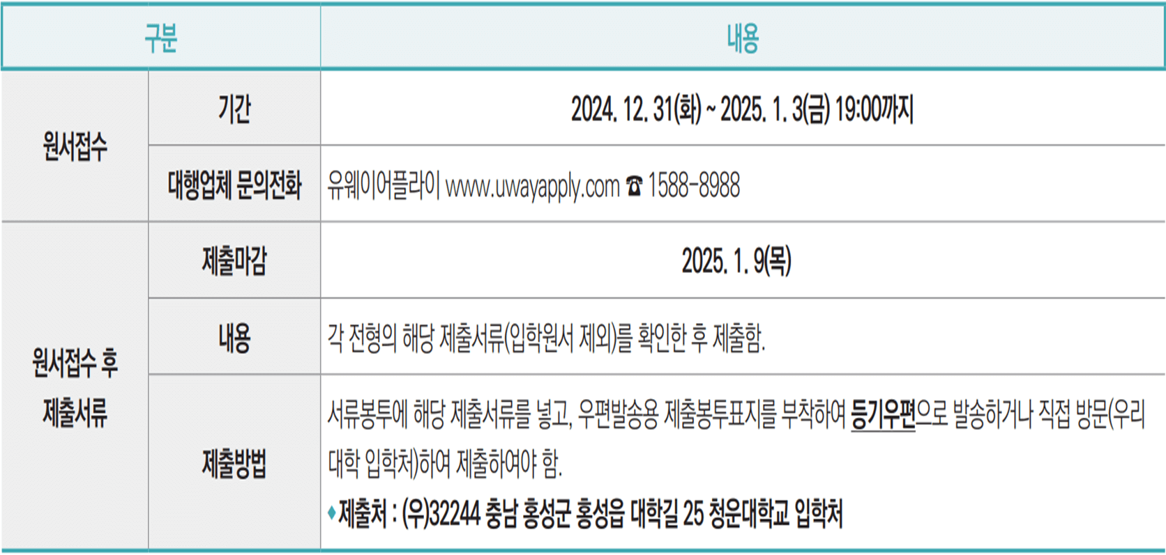 | 청운대 입학처 홈페이지 | http://enter.chungwoon.ac.kr |