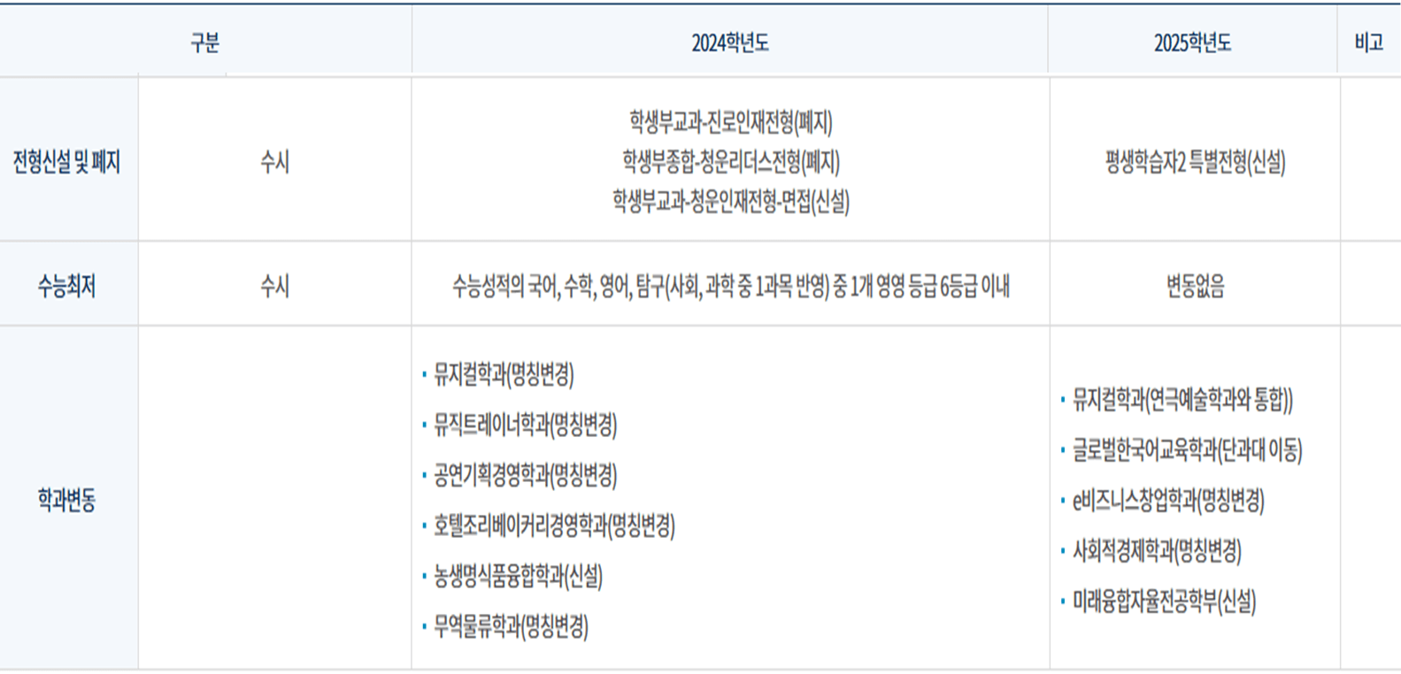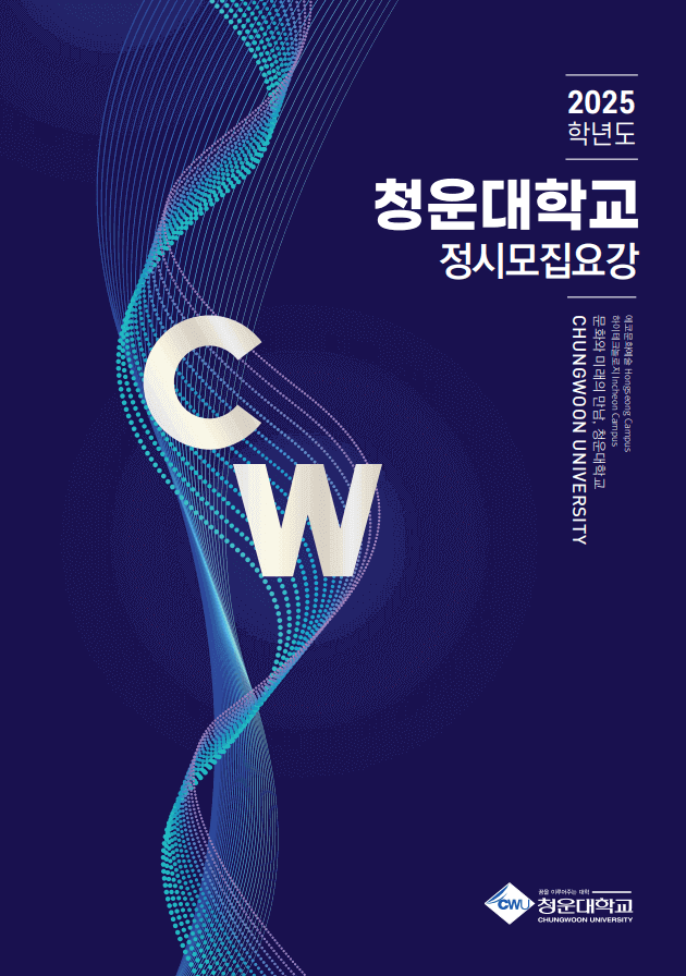 2025학년도 청운대 정시모집 지원을 희망하는 수험생분들을 위해 학과에 대한 소개를 안내해 드리겠습니다. 학과소개, 졸업 후 진로, 교육목표, 전공역량, 교수소개, 교과과정, 전공교육과정 체계도, 학사일정 등 각 학과의 특·장점들의 내용이 수록되어 있습니다. 천천히 읽어보시고 지원 시 도움이 되시기 바랍니다.