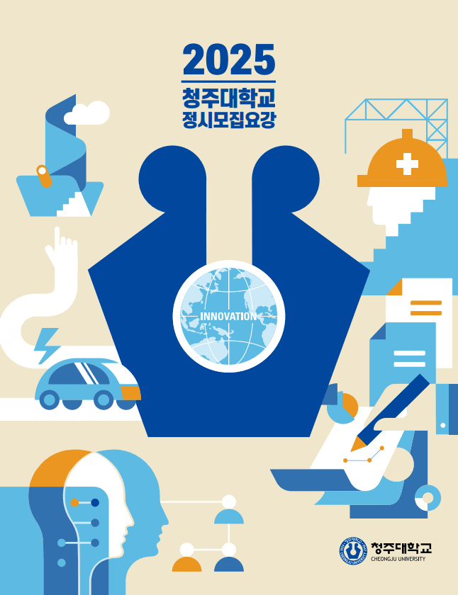 2025학년도 청주대 정시모집 지원을 희망하는 수험생분들을 위해 학과에 대한 소개를 안내해 드리겠습니다. 학과소개, 교수소개, 교과과정, 학과소식, 졸업 후 진로, 취업정보 등 각 학과의 특·장점들의 내용이 수록되어 있습니다. 천천히 읽어보시고 지원하시기 전에 도움이 되시기 바랍니다.