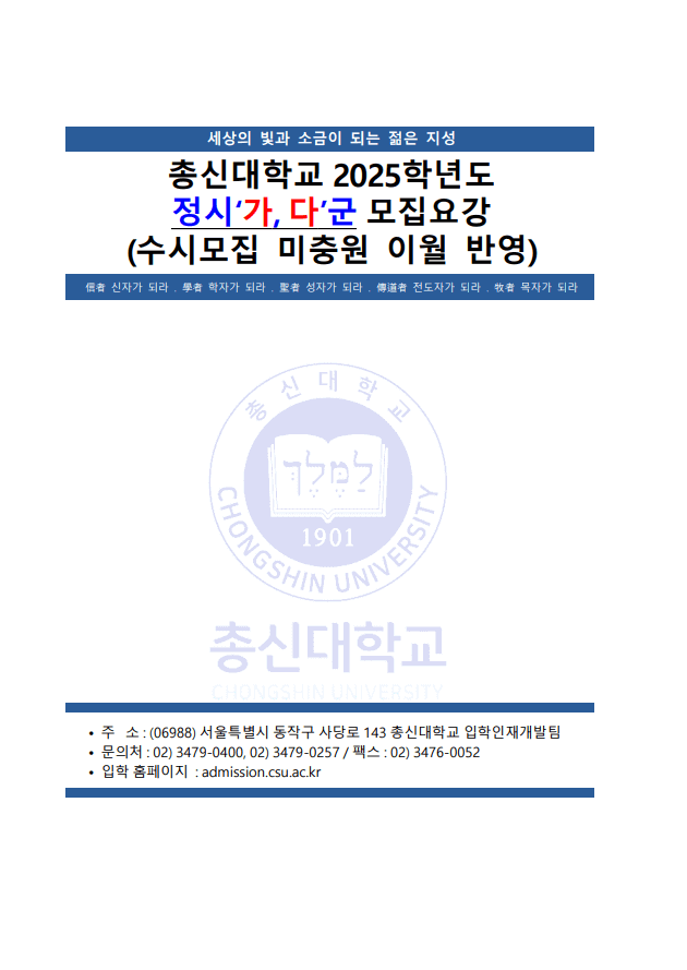● 총신대 입학정보 홈페이지 : http://admission.csu.ac.kr