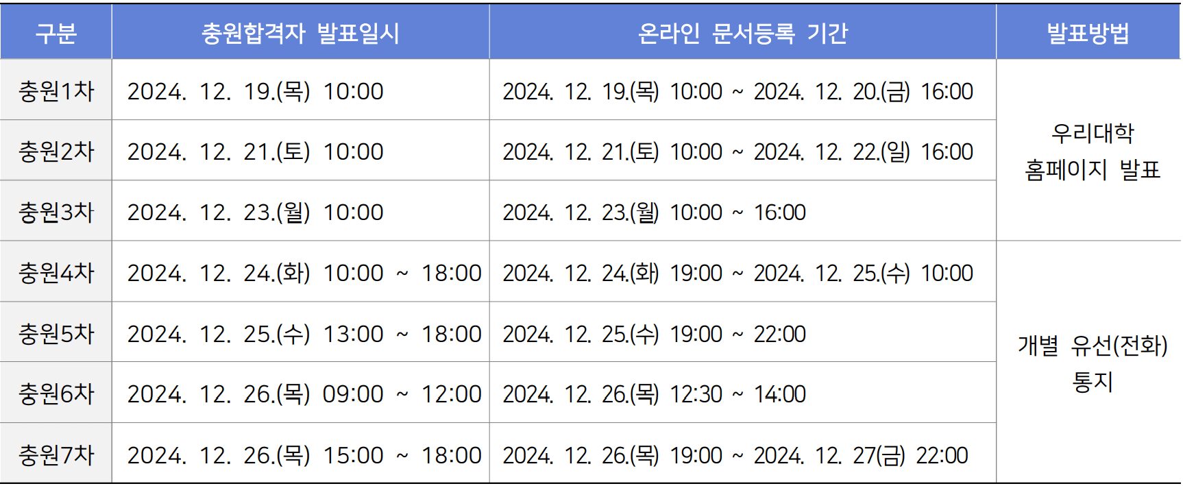- 충원합격 5차(최종) : 2025. 2. 19.(수) 18:00까지