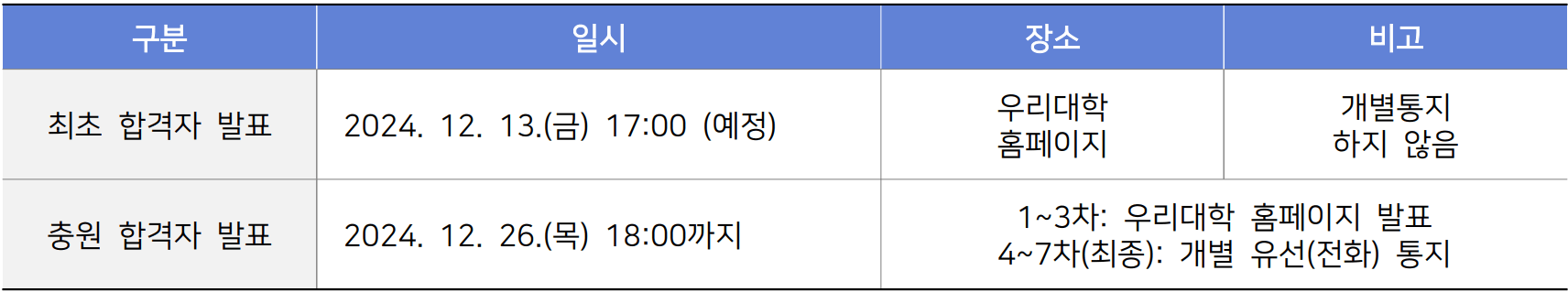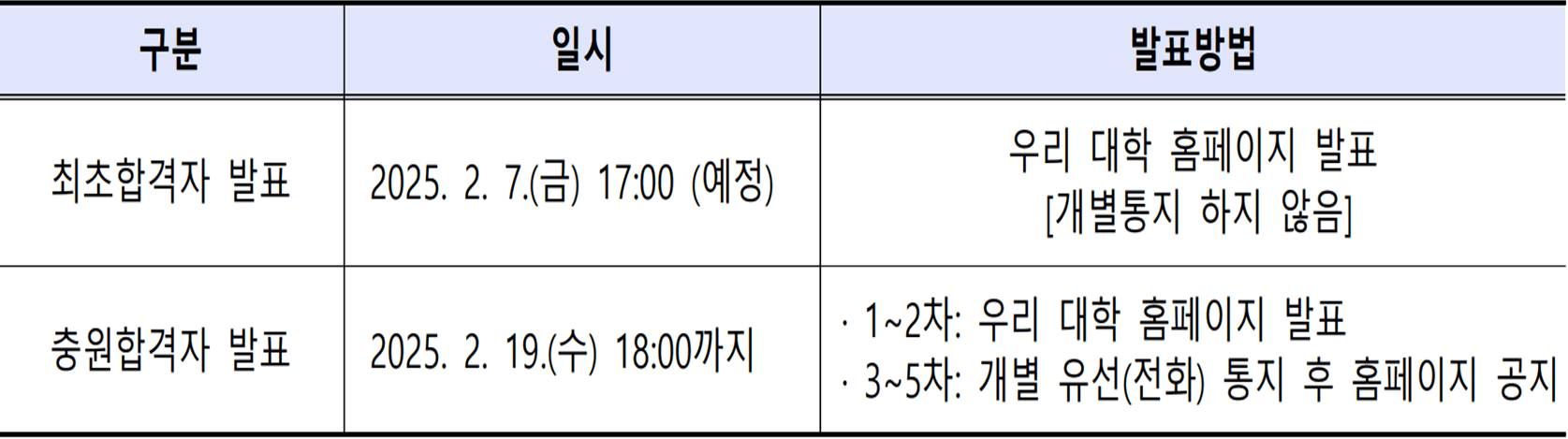 - 충원합격 1차 : 2025. 2. 13.(목) 10:00