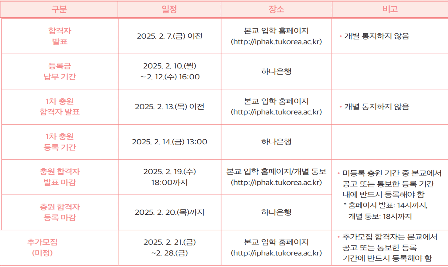 - 충원합격자 발표 마감 : 2025. 2. 19.(수) 18:00
