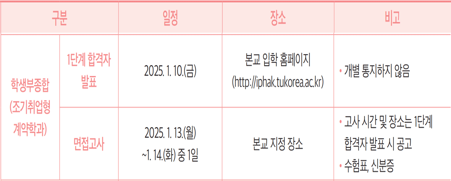 2025학년도 한국공학대 수시모집 합격자 발표일 및 충원(추가) 합격자 발표일 등을 안내해 드리도록 하겠습니다. 아래 일정을 참고하셔서 입학 등록에 차질이 없으시기 바랍니다.