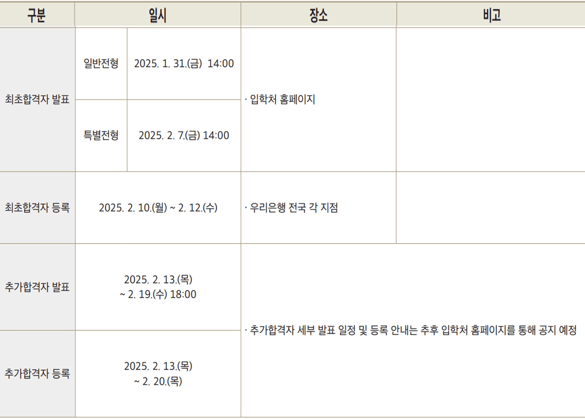 - 특별전형 : 2025. 2. 7.(금) 14:00