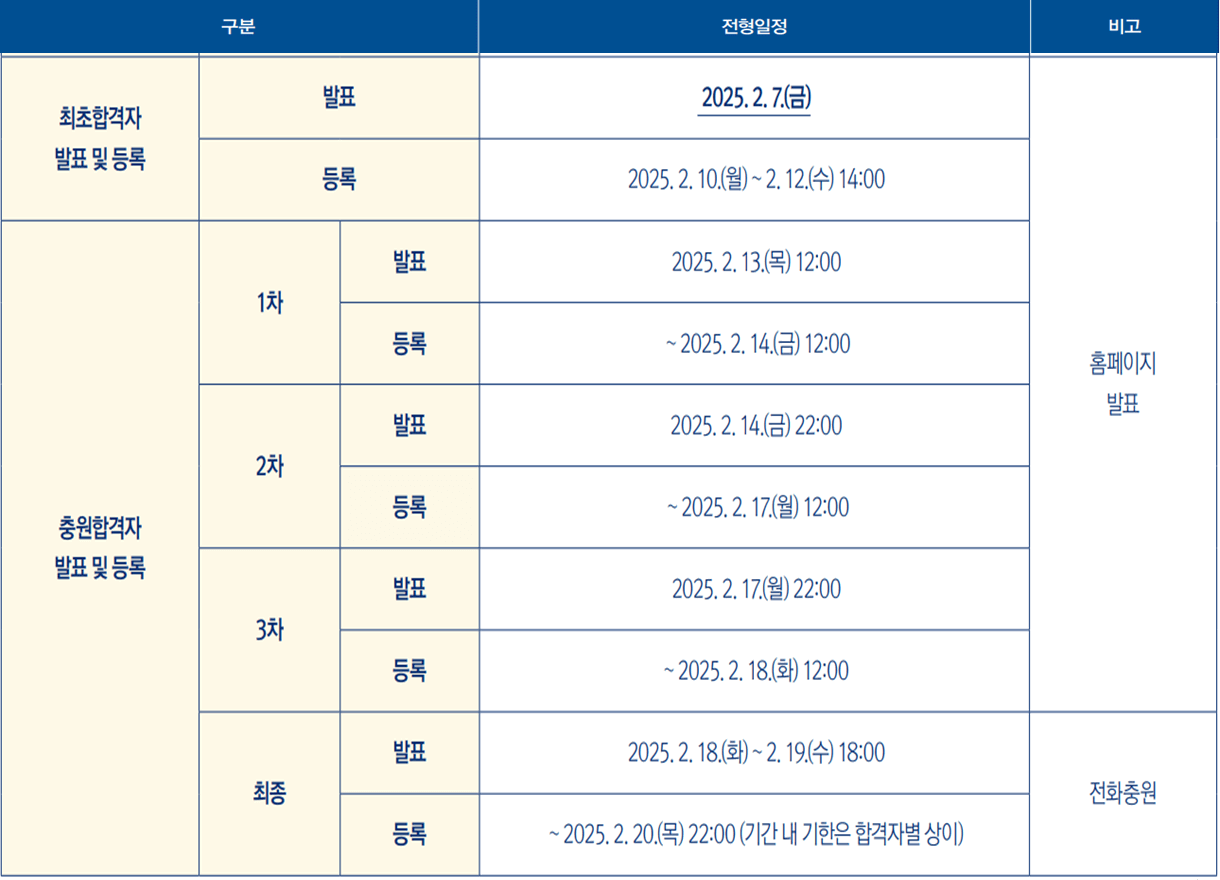 - 최종 : 2025. 2. 18.(화) ~ 2. 19.(수) 18:00 (전화충원)