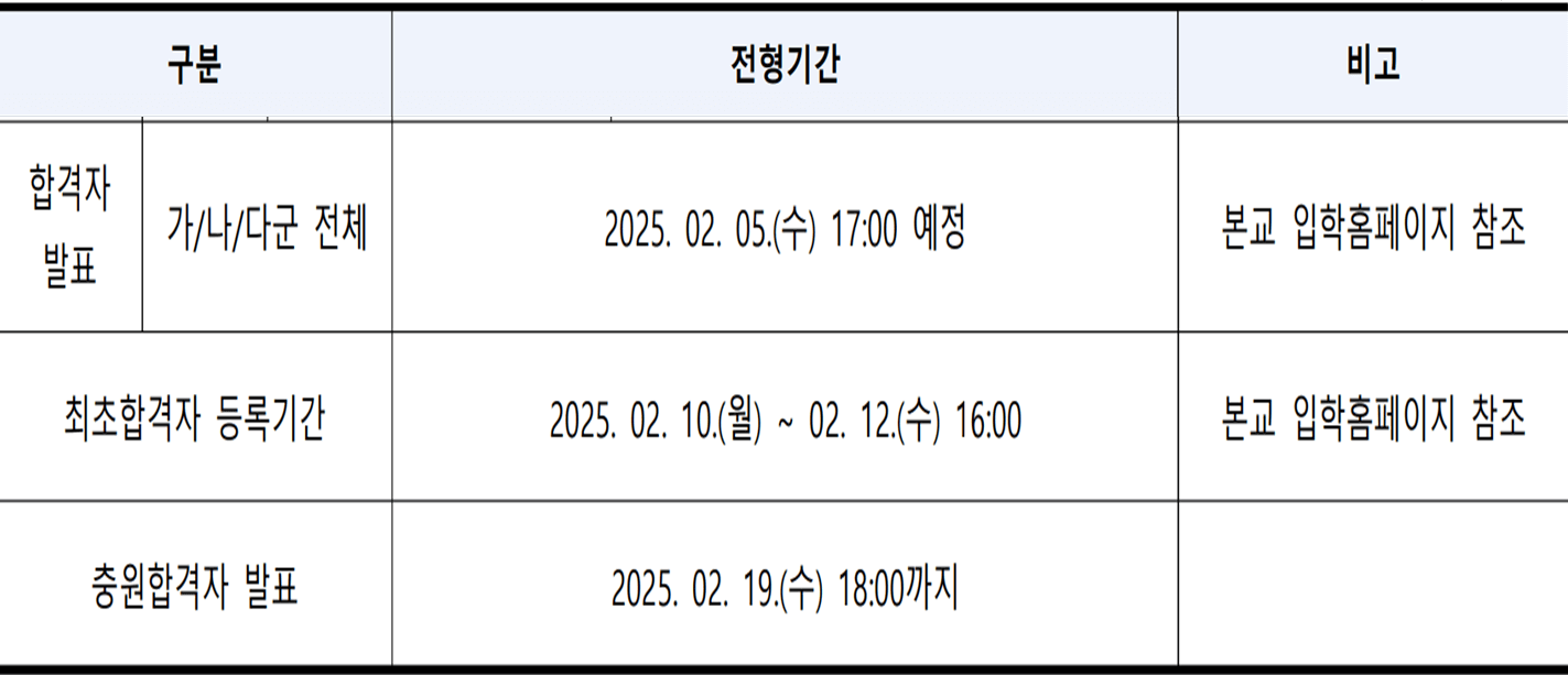 - 최종 충원합격 통보마감 : 2025. 02. 19.(수) 18:00까지