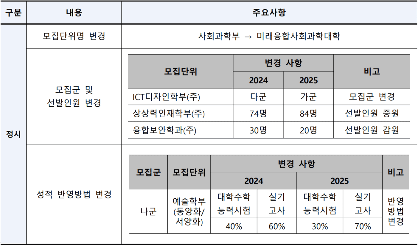 | 크리에이티브인문예술대학 | 미래융합사회과학대학 | 디자인대학 | IT공과대학 |