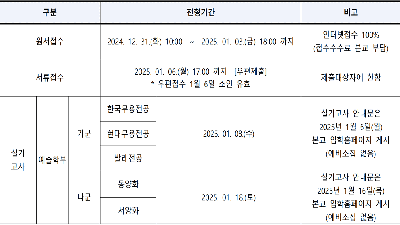 | 원서접수일 | 2024. 12. 31.(화) 10:00 ~ 2025. 01. 03.(금) 18:00 |