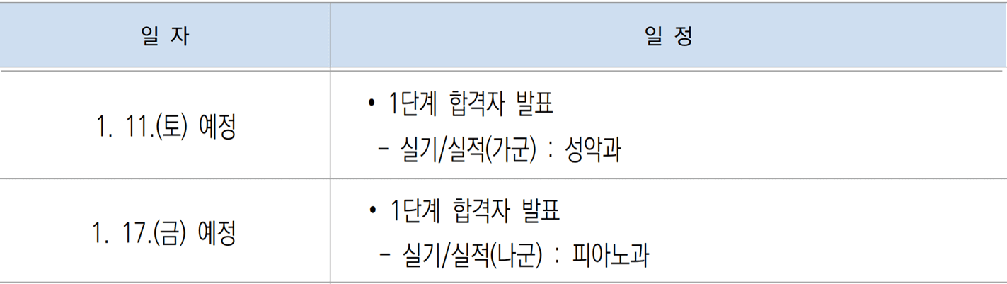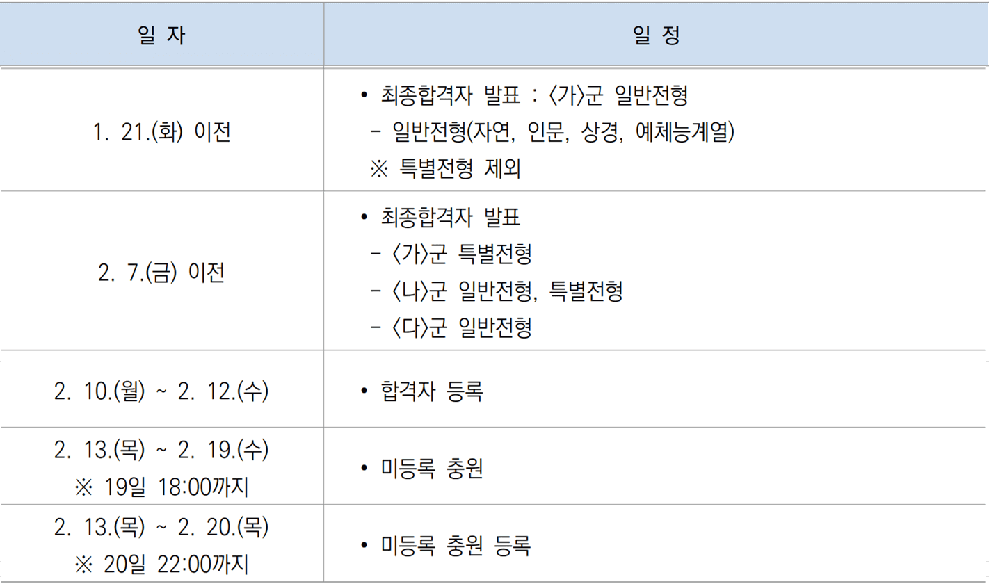 ◈ 정시모집 합격자 발표일 및 충원합격자 발표일 안내
