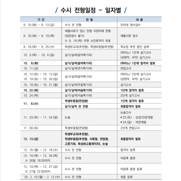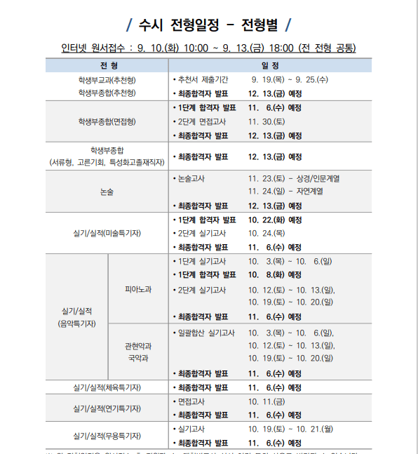 | 9월 10일(화) - 9월 13일(금) | 수시 전 전형 | 인터넷 원서접수 |