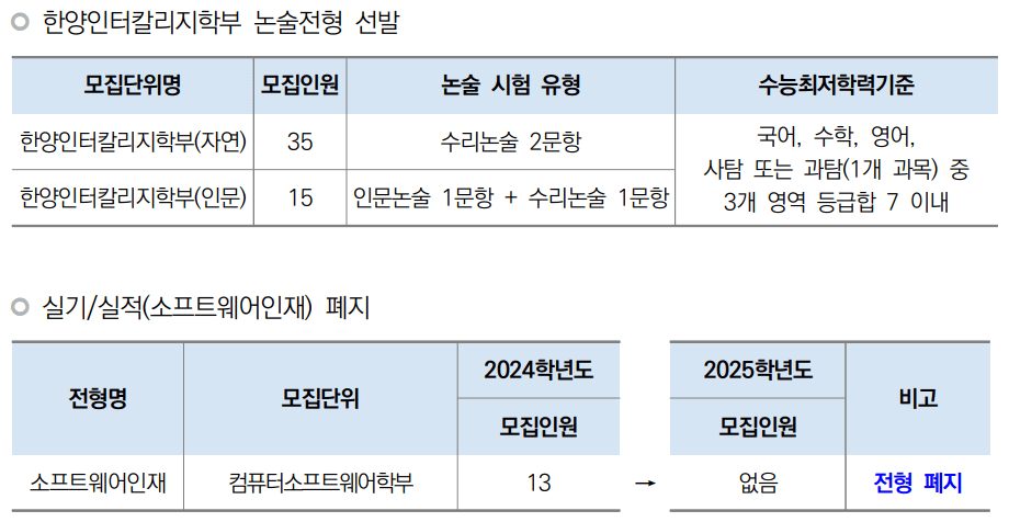 2025학년도 수시모집에 대한 궁금한 점은 입학상담 Q&A를 통해 해소하시면 됩니다. 또한 도저히 이해가 안 될 경우에는 한양대 입학처 직접 유선 상담을 하면 친절하게 안내해 드리고 있으니 참고하시기 바랍니다.