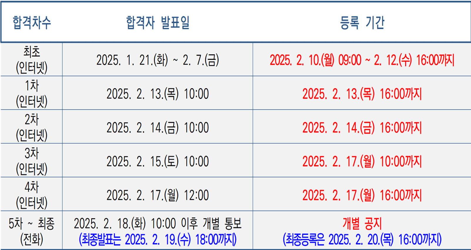 - 5차 ~ 최종(전화) : 2025. 2. 18.(화) 10:00 이후 개별 통보
