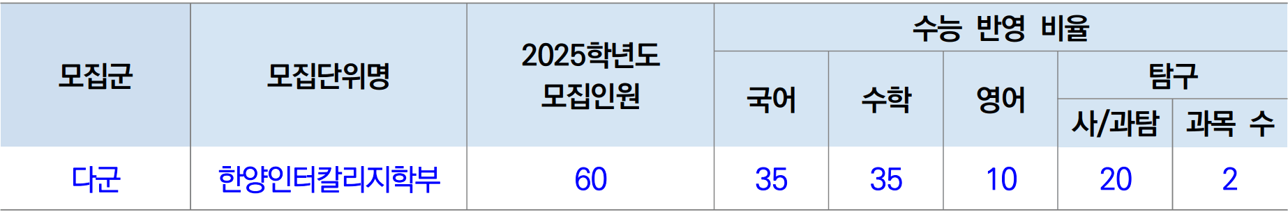 | 한양대(서울) 입학처 홈페이지 | http://go.hanyang.ac.kr |