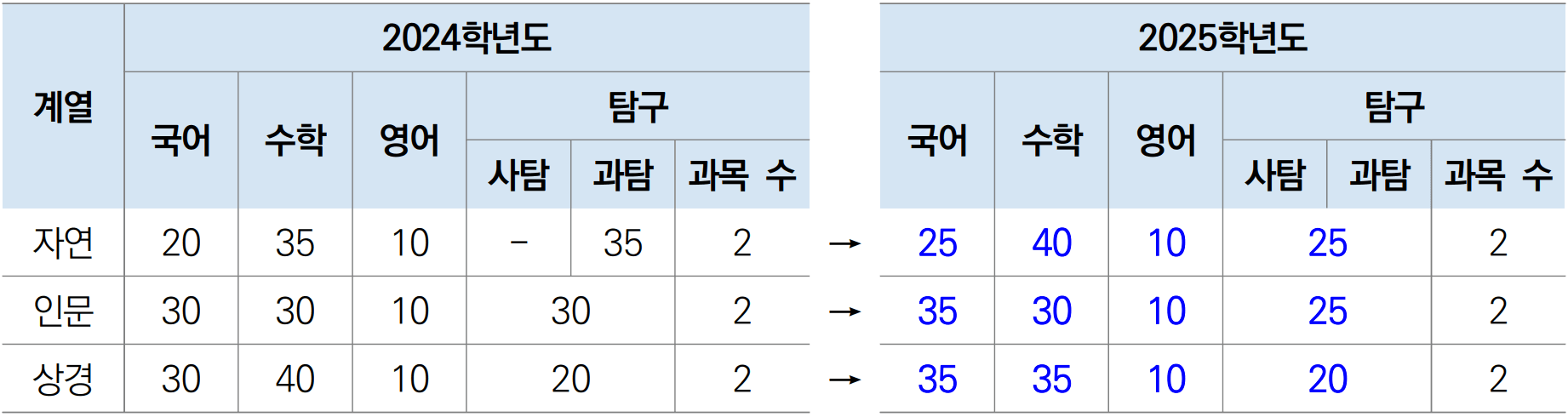 ● 수능 영역별 반영 비율 변경