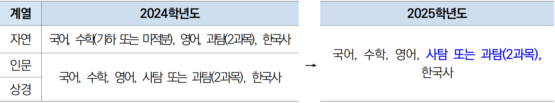 ● 자연계열 수능 필수 응시 과목 폐지