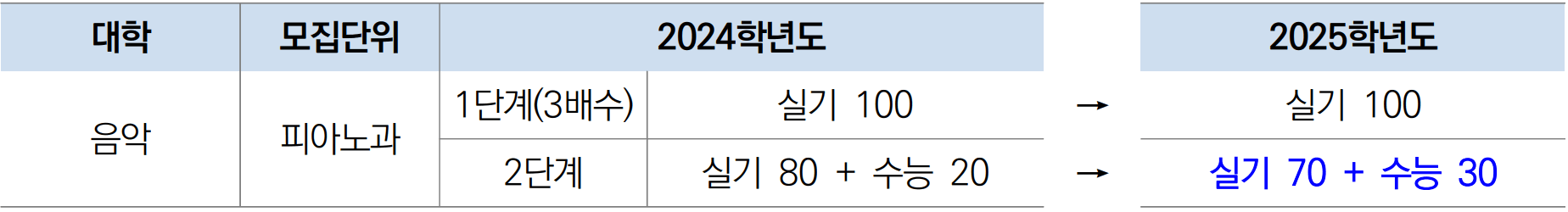 ● 정시 <나>군 피아노과 2단계 전형요소 반영비율 변경
