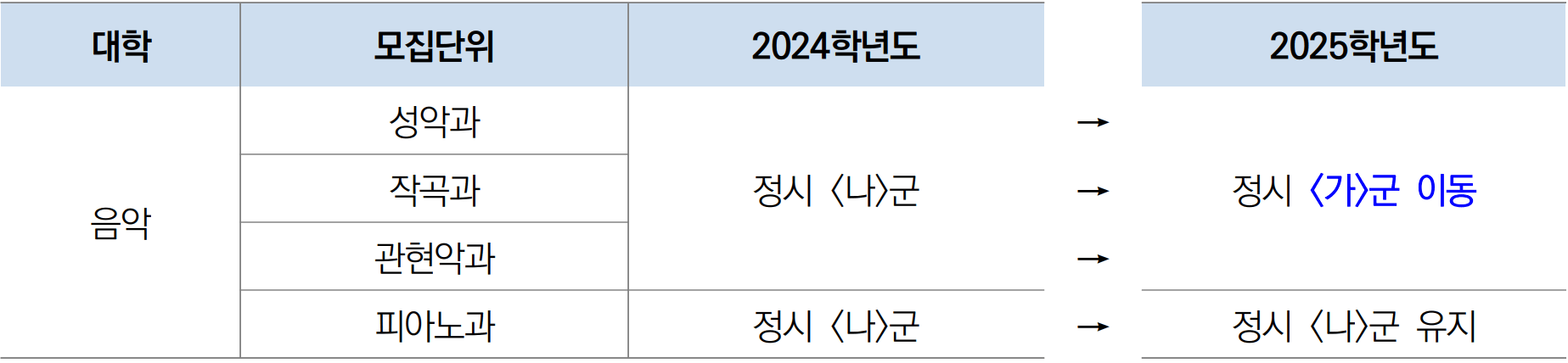 ● 음악대학 정시 모집군 변경