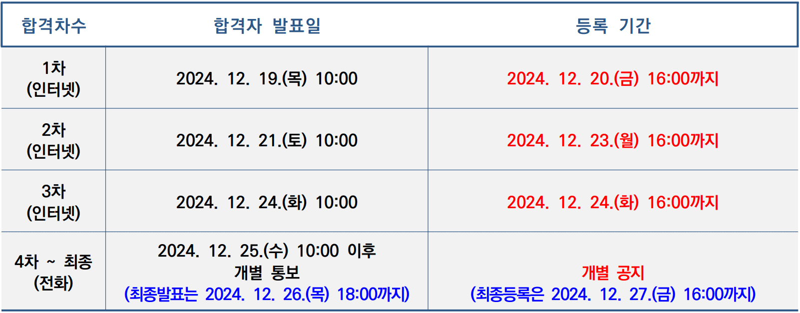 ◈ 정시모집 합격자 발표일 및 충원합격자 발표일 안내