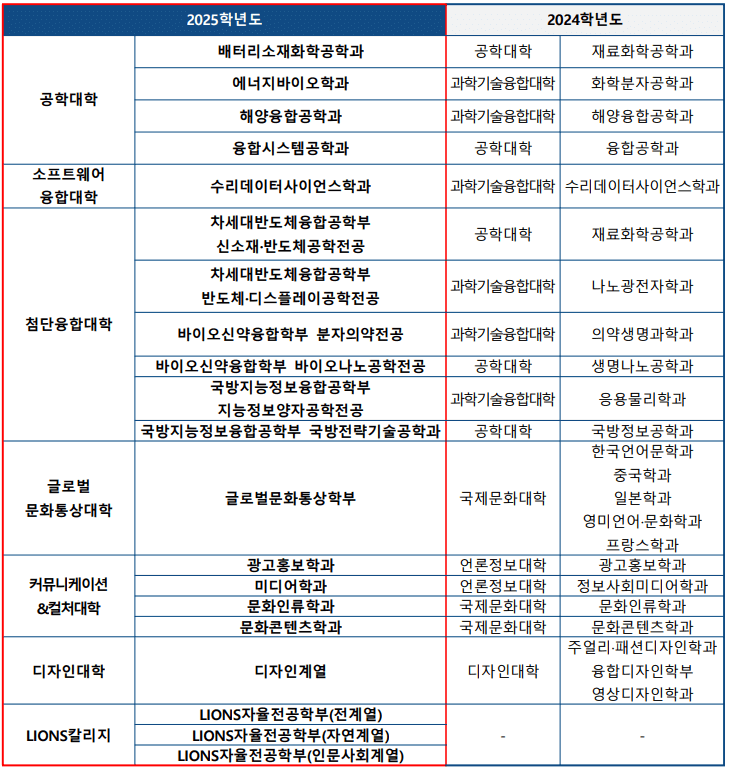 | 구분 | ★ 2025학년도 | 2024학년도 |