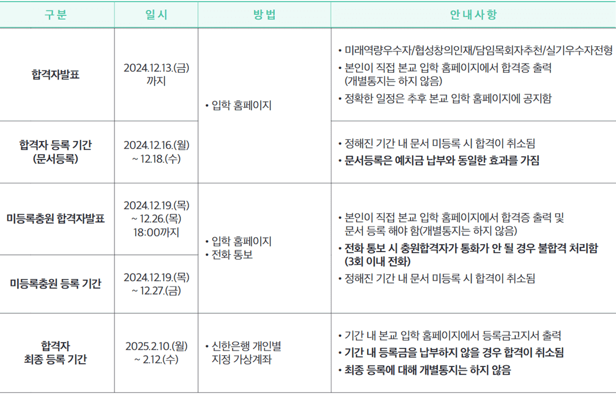 1. 수시모집 합격자 발표일 : 2024. 12. 13.(금) 까지