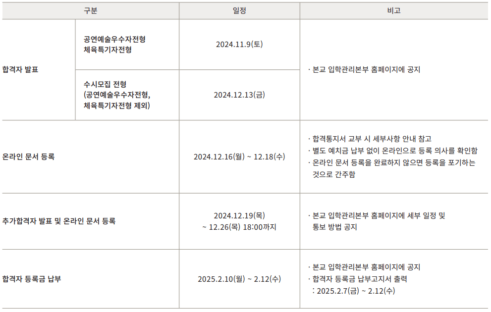 ◈ 정시모집 합격자 발표일 및 충원합격자 발표일 안내