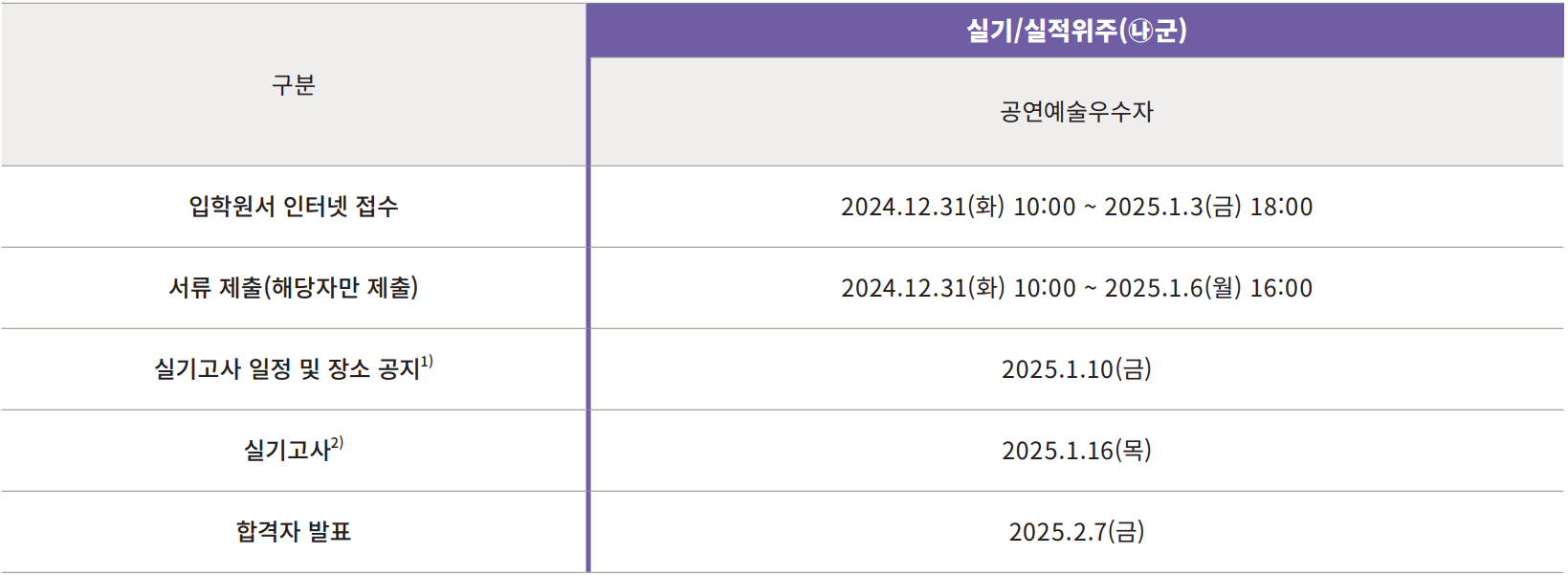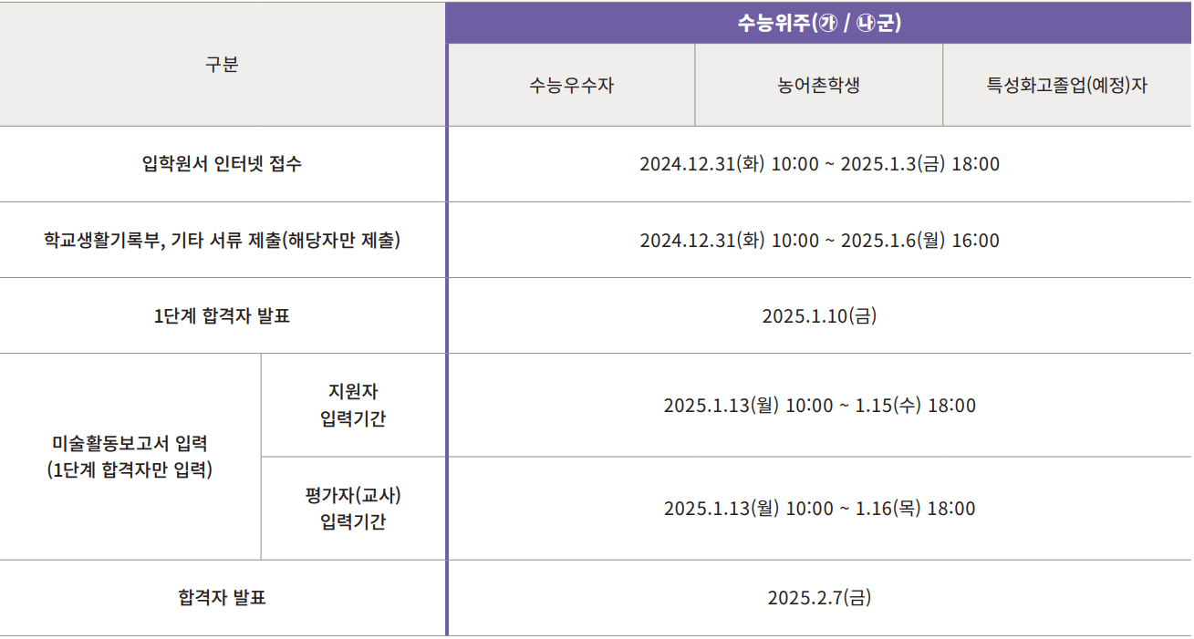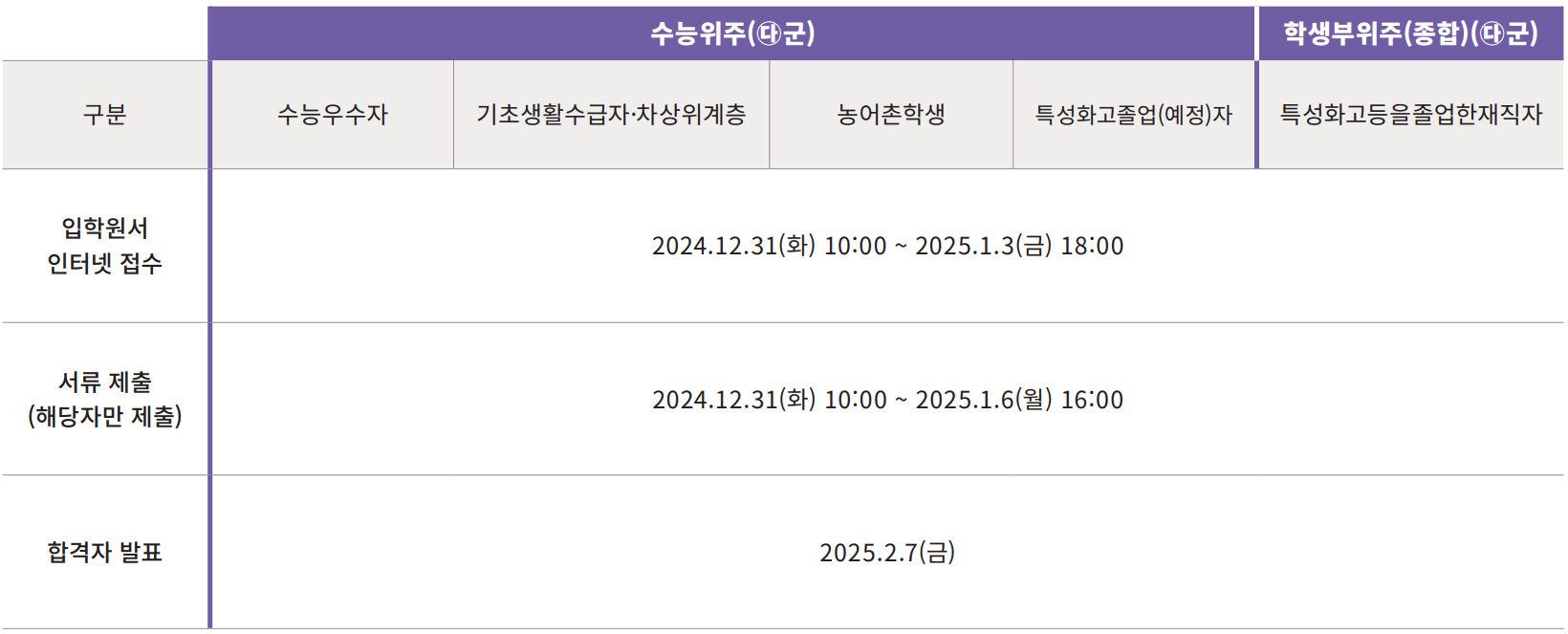 | 원서접수 | 2024. 12. 31.(화) 10:00 ~ 2025. 1. 3.(금) 18:00 |
