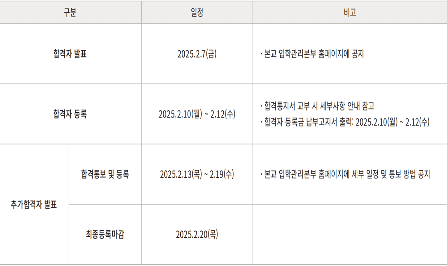 ★ 추가합격자 발표 : 2025. 2. 13.(목) ~ 2. 19.(수)