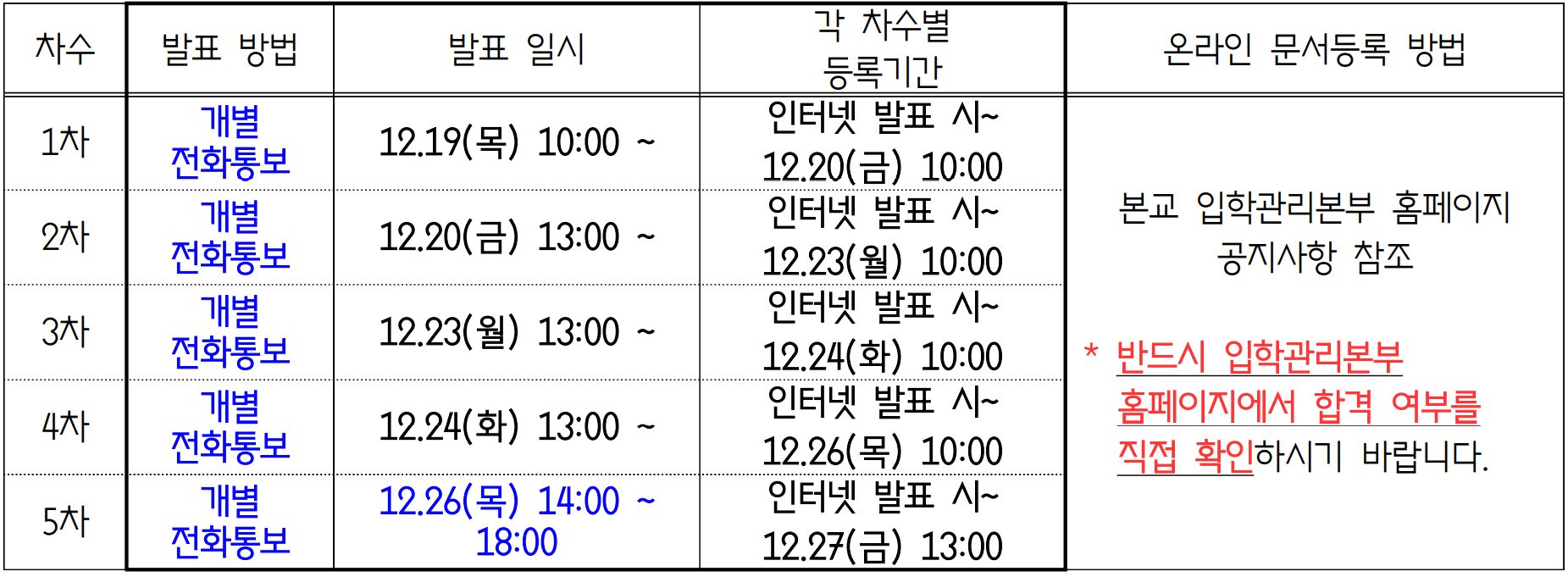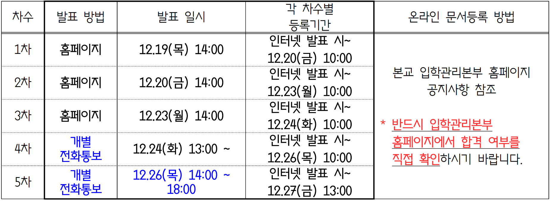 ◈ 정시모집 합격자 발표일 및 충원합격자 발표일 안내