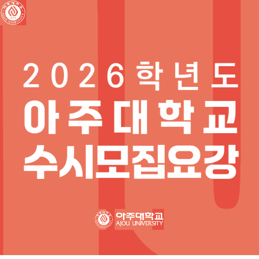 2026학년도 아주대학교 수시모집에 관심 있는 수험생 여러분을 위해 전형 소개부터 생활정보까지 핵심 내용을 정리했습니다. 아래 내용을 참고하여 각 전형별 특성과 지원 방법을 정확히 파악해보시기 바랍니다.