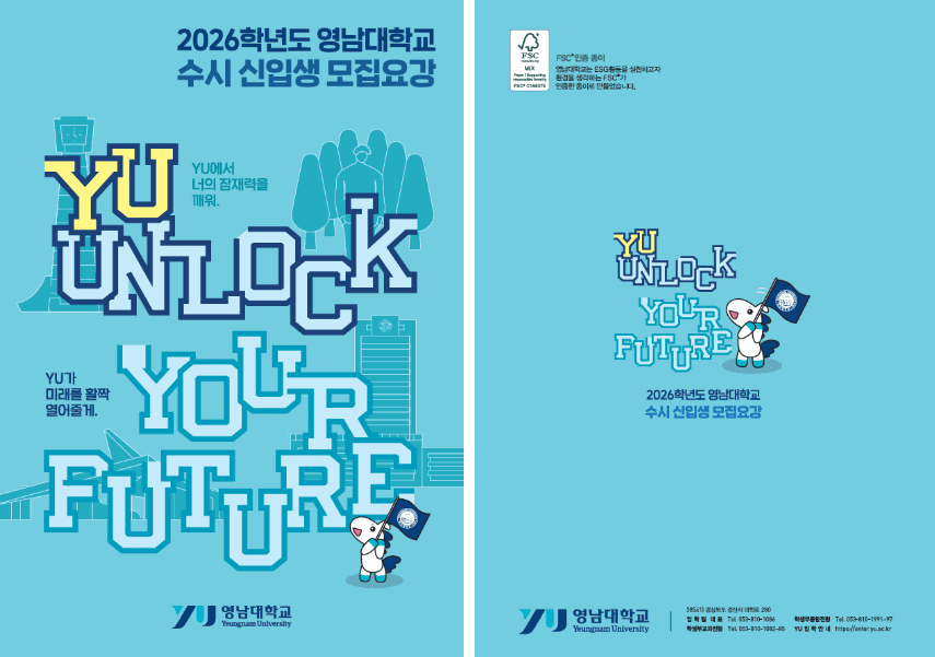 - 전형기간 중 수험생에게 알리는 모든 안내사항(합격자 발표 포함)은 개별 통지하지 않고 영남대학교 입학안내 홈페이지에 공지하므로, 홈페이지 미확인으로 인한 모든 불이익은 수험생 본인 책임입니다.