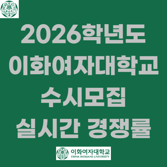 이화여자대학교 2026학년도 수시모집 일정이 공개되었습니다. 수험생이라면 원서접수일, 서류 제출일, 전형료, 경쟁률을 반드시 확인해야 합니다. 아래 내용을 정리했으니 지원 계획에 참고하시기 바랍니다. 더불어서 아래에 있는 2026학년도 이화여대 수시모집 실시간 경쟁률을 함께 참고하시면 지원시 많은 도움이 되리라 생각됩니다.