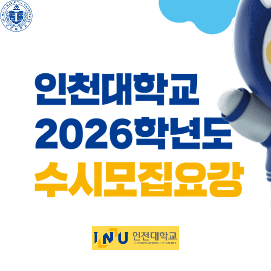 2026학년도 인천대학교 수시모집은 전형의 명칭, 모집단위, 수능 최저학력기준, 실기고사 방식 등에서 다수의 변화가 이루어졌습니다. 특히 학생부교과전형과 학생부종합전형은 반영요소가 단순화되었고, 실기/실적전형은 평가 비율과 고사 형태가 대폭 개선되어 지원자의 준비 방향에 큰 영향을 미칠 수 있습니다. Global Trade & Service학부 신설, 사회통합전형의 자격 완화, 실기우수자전형 실기 시간 확대 등은 주목할 부분입니다. 변화된 내용을 정확히 이해하고 나에게 적합한 전형을 선택하는 것이 합격의 열쇠입니다. 수험생들은 반드시 전형별 변경사항을 숙지한 뒤 전략적으로 지원을 준비하시기 바랍니다.