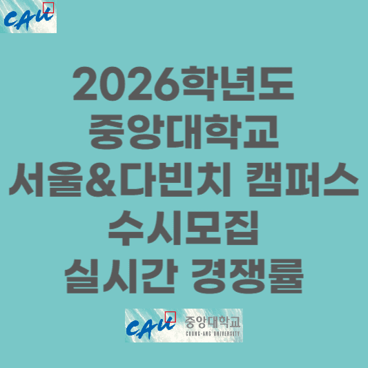 2025학년도 중앙대학교 서울·다빈치캠퍼스 수시모집 경쟁률 자료에 따르면, 전체 평균 경쟁률은 26.71:1로 나타났습니다. 특히 서울캠퍼스는 31.48:1로 높은 경쟁률을 기록하며 인기 전형과 학과의 치열한 입시 분위기를 보여주었습니다. 학생부종합(CAU어울림) 전형은 38.35:1, 논술 전형은 84.00:1, 실기/실적(실기형)은 87.96:1로 매우 높은 경쟁률을 보였습니다. 반면, 다빈치캠퍼스는 평균 12.13:1로 상대적으로 낮지만 일부 전형은 여전히 경쟁이 치열했습니다. 이러한 수치는 수험생들에게 전형별 지원 전략의 중요성을 다시 한 번 상기시켜 주며, 2026학년도 지원 시에는 본인의 성적, 비교과 활동, 전형 특성을 종합적으로 고려한 맞춤형 준비가 필수적입니다. 아래 2026학년도 중앙대 서울&다빈치캠퍼스 수시모집 실시간 경쟁률 참고하셔서 좋은 결과를 얻으시기 바랍니다.